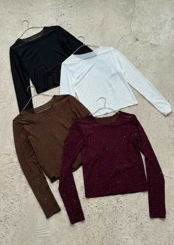 Remera de tull con strass cuello bote talle único equivale a un S-M